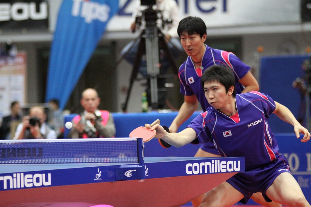 hier kann man den tenergy-schwamm sowie den schmetterling am belag bei ryu ganz gut erkennen